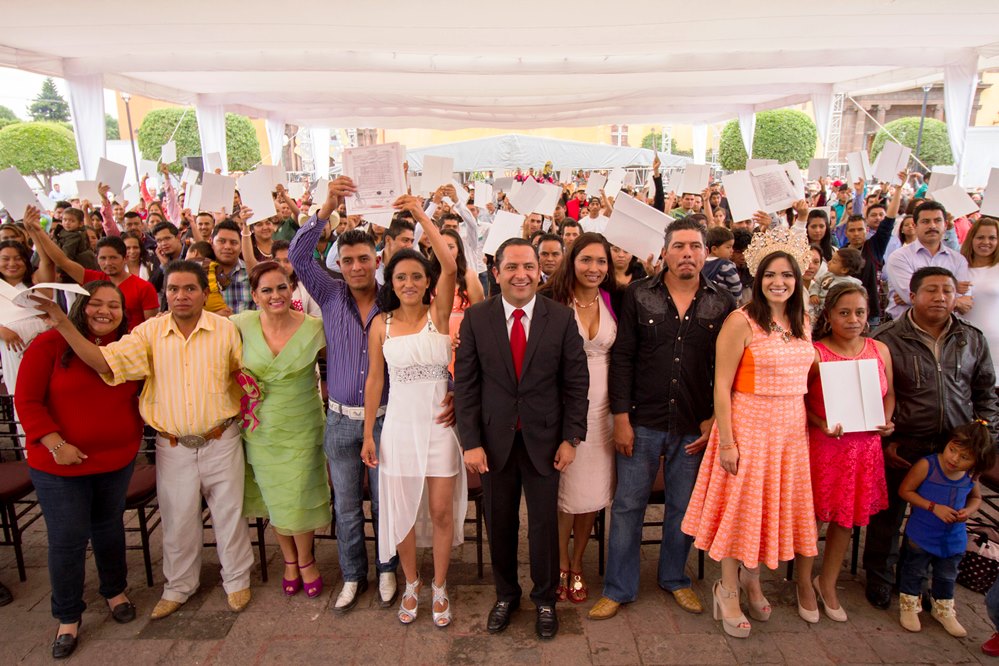 “Cada una de las parejas que el día de hoy han aceptado cohabitar, ayudarse y brindarse fidelidad, respeto, asistencia y comunidad de vida; van a fortalecer a la familia como célula y base social, porque a partir de hoy ustedes son una nueva familia”, indicó.