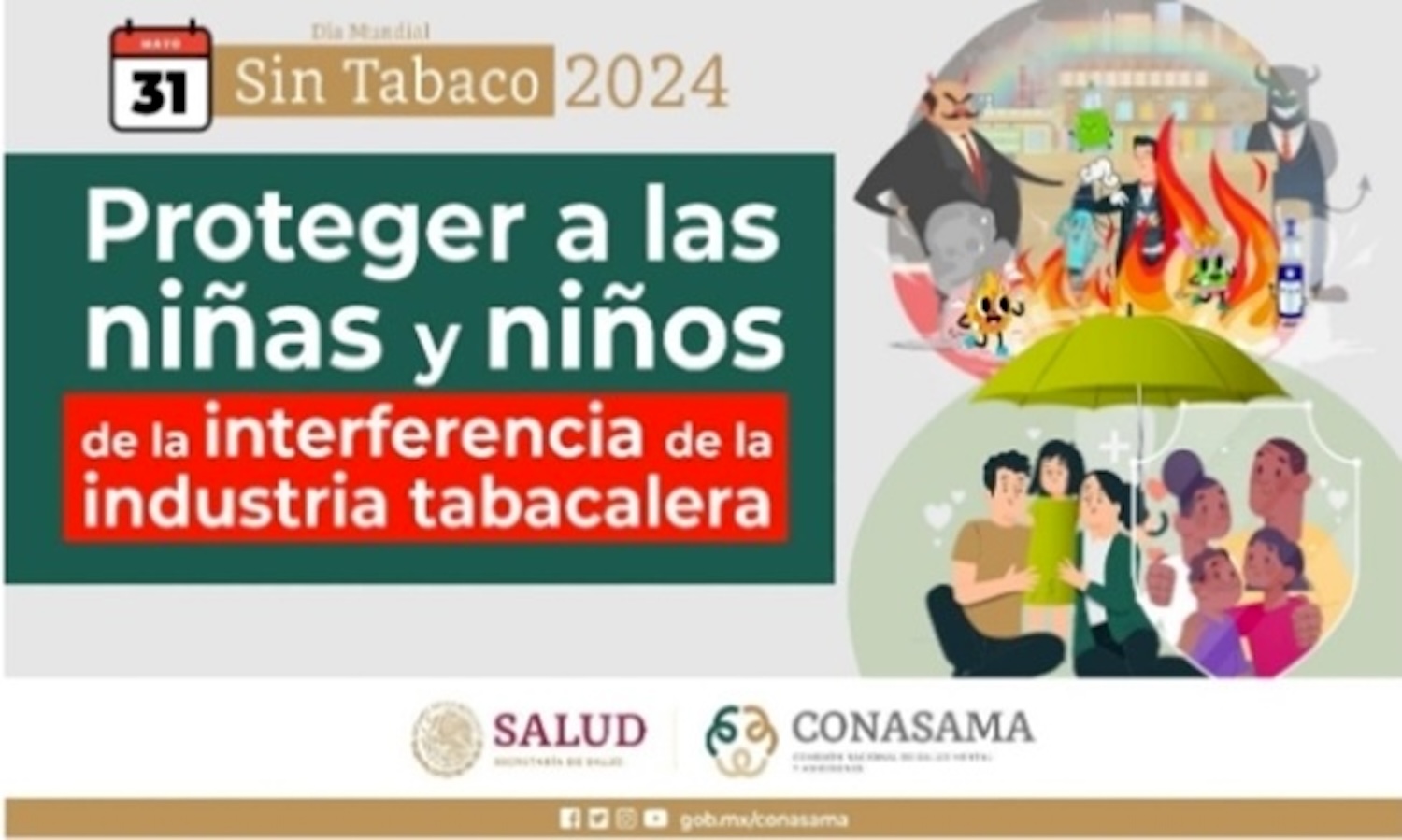 La Secretaría de Salud (Sesa) del estado de Querétaro se adhiere cada 31 de mayo a la conmemoración del Día Mundial sin tabaco, el cual tiene el objetivo de dar conocer las consecuencias y riesgos a la salud que ocasiona el tabaquismo. Para este año 2024 el lema es “Proteger a las niñas y niños de la interferencia de la industria tabacalera”.