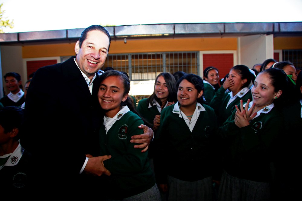 El mandatario estuvo acompañado en esta gira por el Secretario de Educación del Estado, Alfredo Botello Montes; el Secretario de Desarrollo Social, Agustín Dorantes Lámbarri; El Coordinador de la USEBEQ, Enrique Echávarri Larry; el Coordinador General de la Comisión Estatal de Camino, Fernando González Salinas; el delegado de la SEP, Jaime Alcocer; la diputada local Verónica Hernández; y los directores de los planteles Hugo Salinas Villela y Pedro Zea Martínez.