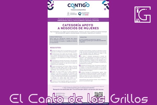 El periodo para el registro de los proyectos será del 13 al 30 de abril o al término del recurso a través del sitio web https://sedesu2.queretaro.gob.mx/fortalecimientoddr2023, aquí también podrás consultar los términos y condiciones.