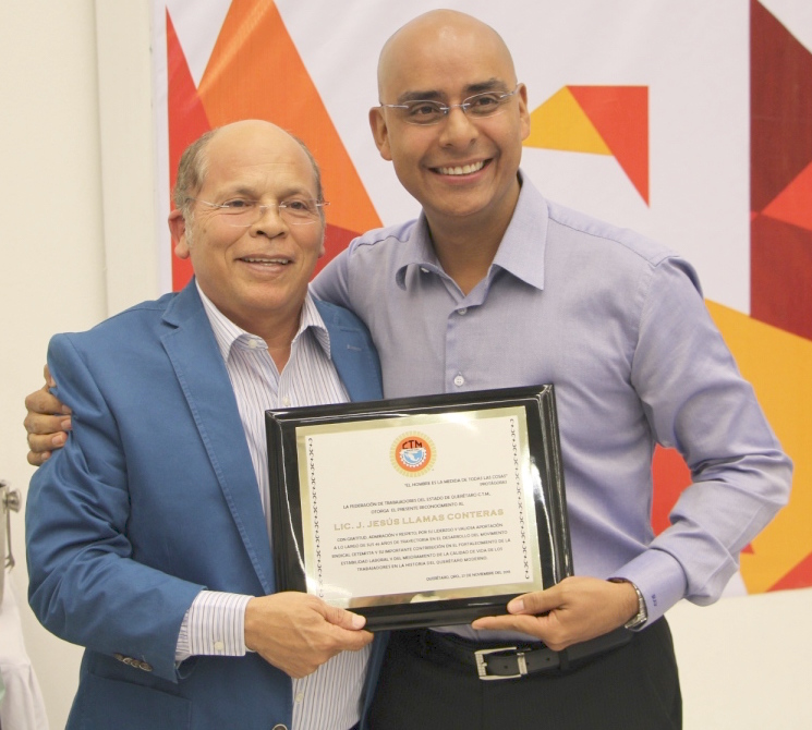 El presidente municipal, Marcos Aguilar Vega, acudió a la XVIcConvivencia anual de empresarios, funcionarios y trabajadores de la Federación de Trabajadores de México en el Estado de Querétaro, CTM, donde además de felicitar a los miembros de la organización ahí reunidos, entregó un reconocimiento al diputado Jesús Llamas Contreras por su trayectoria sindical.