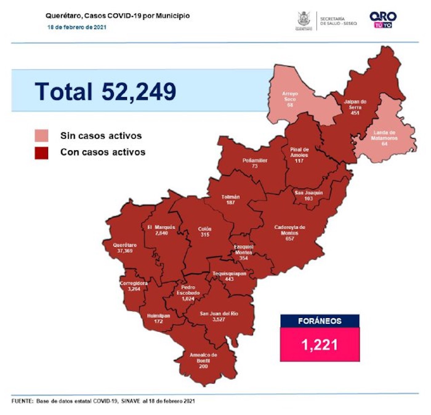 En la entidad se tiene un registro acumulado de 52 mil 249 casos de Covid-19; 51% son mujeres y 49% son hombres.