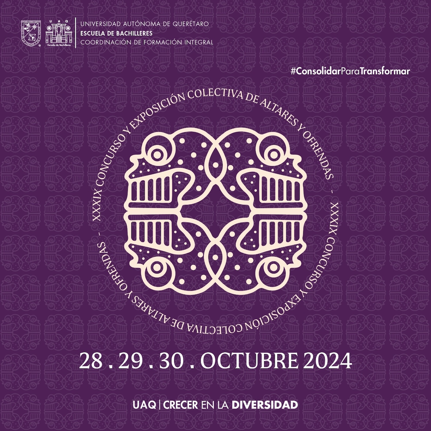 Estas actividades académicas y culturales buscan mantener vivas las raíces de esta fecha, así como fortalecer el sentido de pertenencia e identidad entre la población escolar, a través del 39° Concurso y Exposición Colectiva de Altares y Ofrendas y el 37° Concurso de Calaveras Literarias, así como el cuarto Concurso de Catrina y Catrín.