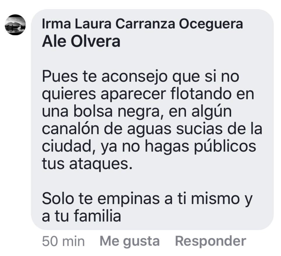 Esto provocó el enojo de Olvera, quien tuiteó: “Te lo digo como hombre maldito corrupto ,delincuente te metes con mi hija y en el terreno de hombres nos arreglamos @MarcosAguilar”, “A ese grado de infamia llega ese infeliz , como hombre lo reto que diga donde y a qué hora @MarcosAguilar”, “Como político nos vemos en las urnas,como hombre donde quieras y cuando quieras corrupto poco hombre @MarcosAguilar”, y otros más.