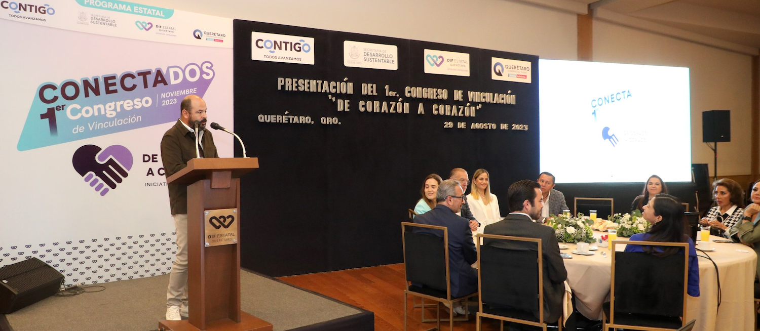 Con el objetivo de crear sinergia entre la iniciativa privada y las organizaciones de la sociedad civil para trabajar de manera conjunta por el desarrollo y progreso de los grupos vulnerables, la presidenta del Patronato del Sistema Estatal DIF, Car Herrera, encabezó la presentación del Primer Congreso “Conectados”, bajo la iniciativa de Corazón a Corazón. Dicho evento se llevará a cabo el 23 y 24 de noviembre en el Querétaro Centro de Congresos (QCC).