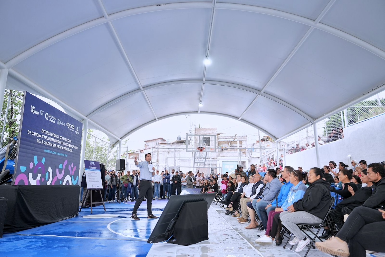 Lo anterior lo dio a conocer durante la entrega de la obra de construcción de cancha y mejoramiento de espacios en el parque de la colonia San Pedrito Peñuelas II, realizada por el gobierno del estado, con una inversión superior a los seis millones de pesos, en beneficio de más de 25 mil habitantes.