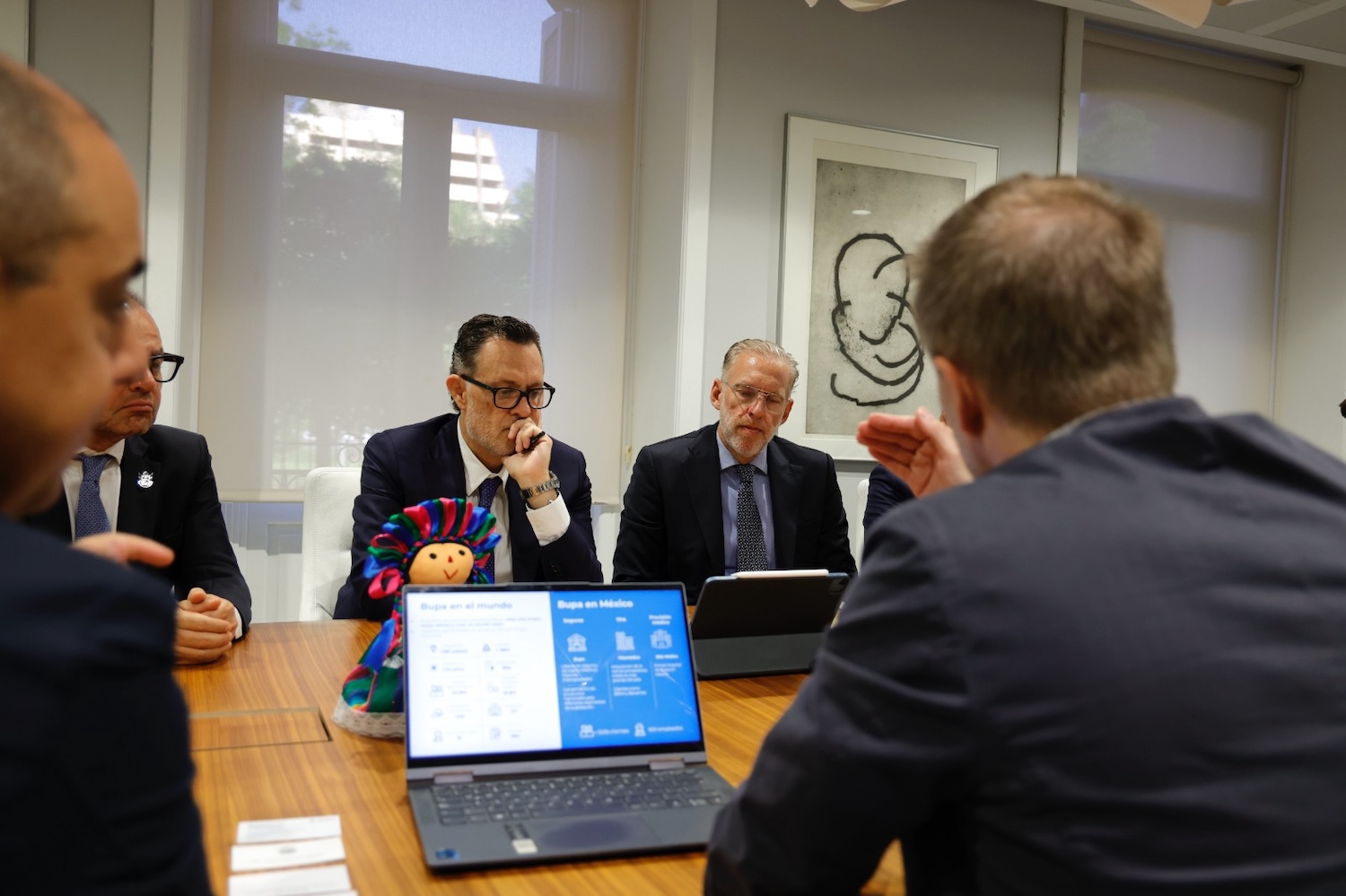 En seguimiento a la agenda del día, la comitiva queretana sostuvo un encuentro con representantes de Sanitas Bupa, empresa global especializada en seguros de salud. Durante la reunión, el director general de Bupa México, Fernando Lledó, y el director Legal y de Desarrollo, Diego González Palacio, compartieron los planes de la compañía para incrementar su base de usuarios en el país, lo que implicaría ampliar la oferta de servicios médicos y fortalecer la atención al cliente en los próximos años. En este contexto, se planteó la posibilidad de establecer un centro de operaciones en Querétaro, destacando las ventajas competitivas del estado en infraestructura, capital humano y entorno médico.