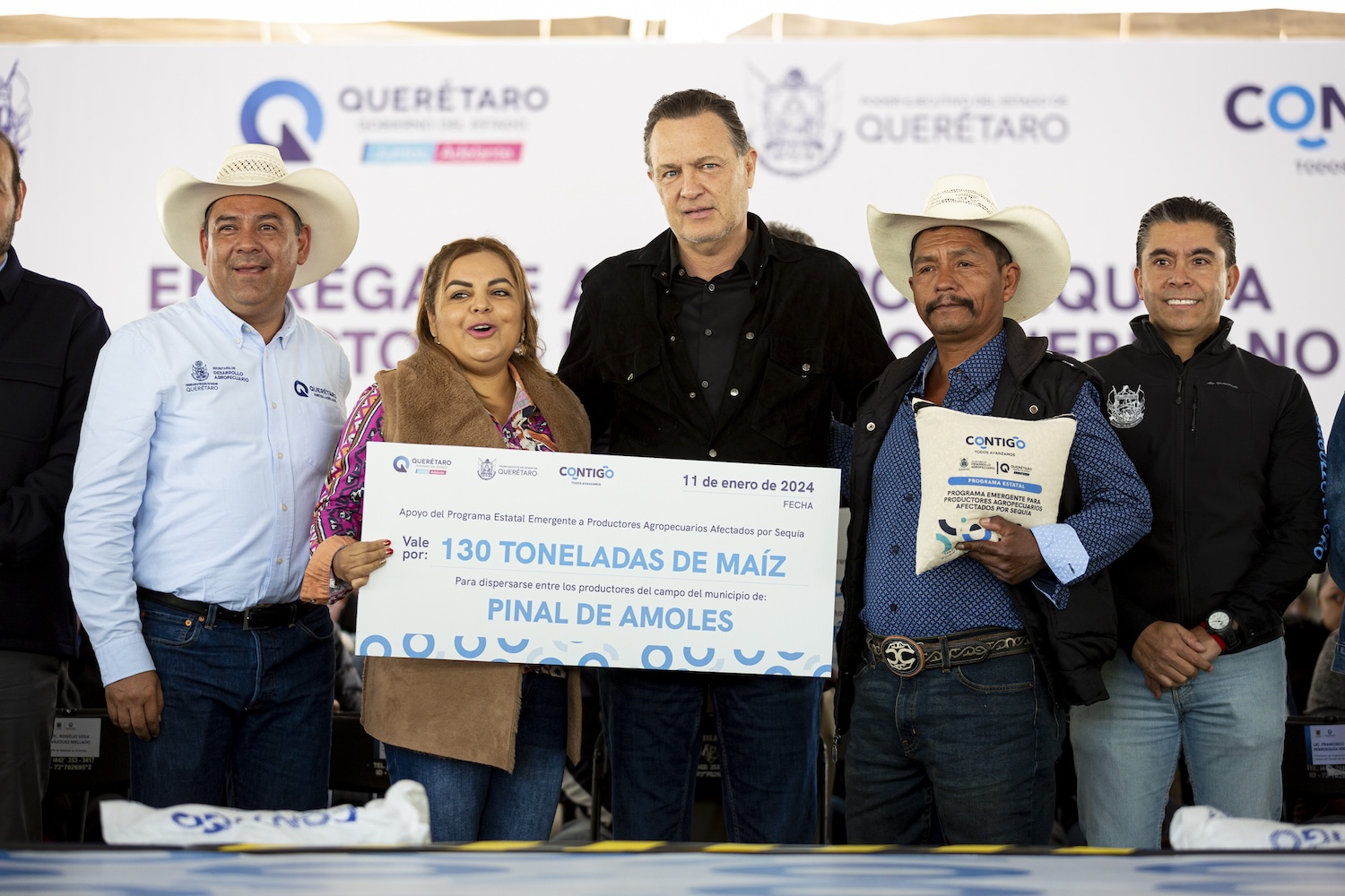 Cabe destacar que durante el evento se entregaron apoyos simbólicos a productoras y productores de los 18 municipios; también se dieron a conocer las toneladas de maíz que serán otorgadas en cada demarcación. En el caso de Amealco se destinarán 748; en Arroyo Seco, 94; en Cadereyta de Montes, 449; Colón, 346; El Marqués, 414; Ezequiel Montes, 140; y Huimilpan, 297.