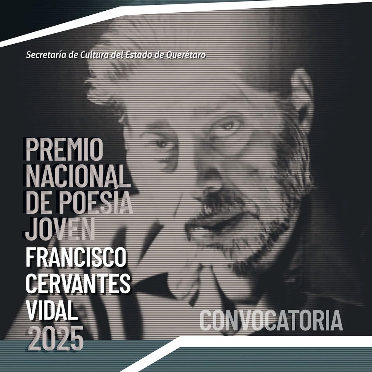En cuanto al Premio Nacional de Poesía Joven “Francisco Cervantes Vidal” 2025, la convocatoria está abierta para todos los poetas mexicanos de nacimiento y extranjeros con más de cinco años de residencia en el país, que tengan un máximo de 30 años cumplidos; podrán participar con volúmenes de poemas inéditos, escritos en español, con tema y forma libre.