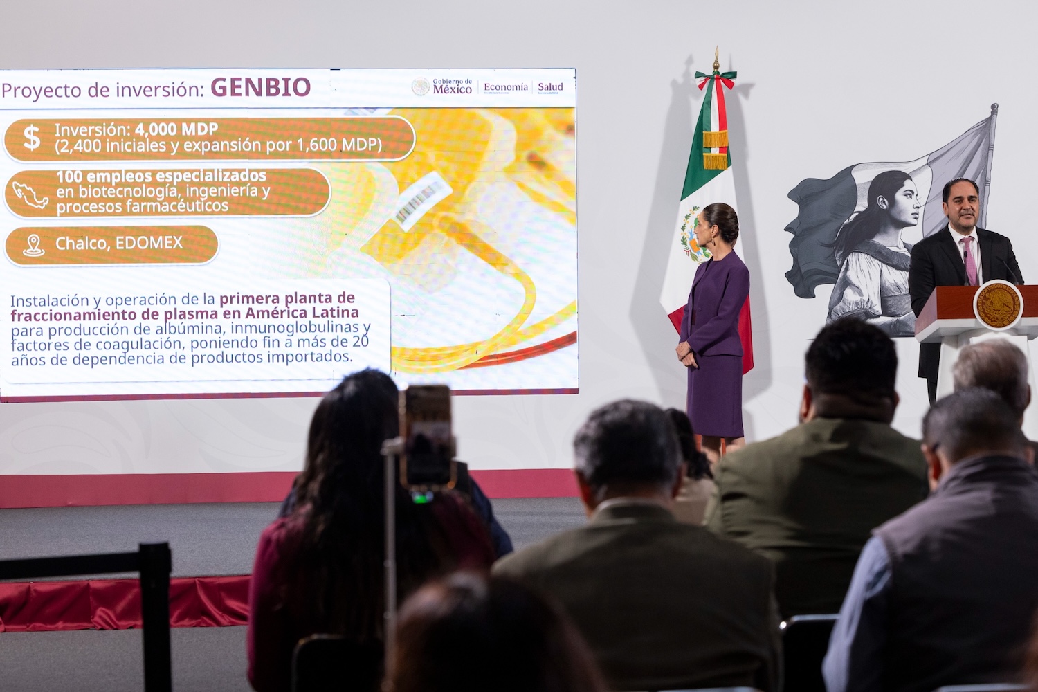El director general de Genbio, José Miguel Ramos Rodríguez, detalló que los 4 mil mdp se invertirán en la instalación y operación de la primera planta de fraccionamiento de plasma en América Latina, que generará 100 empleos especializados.