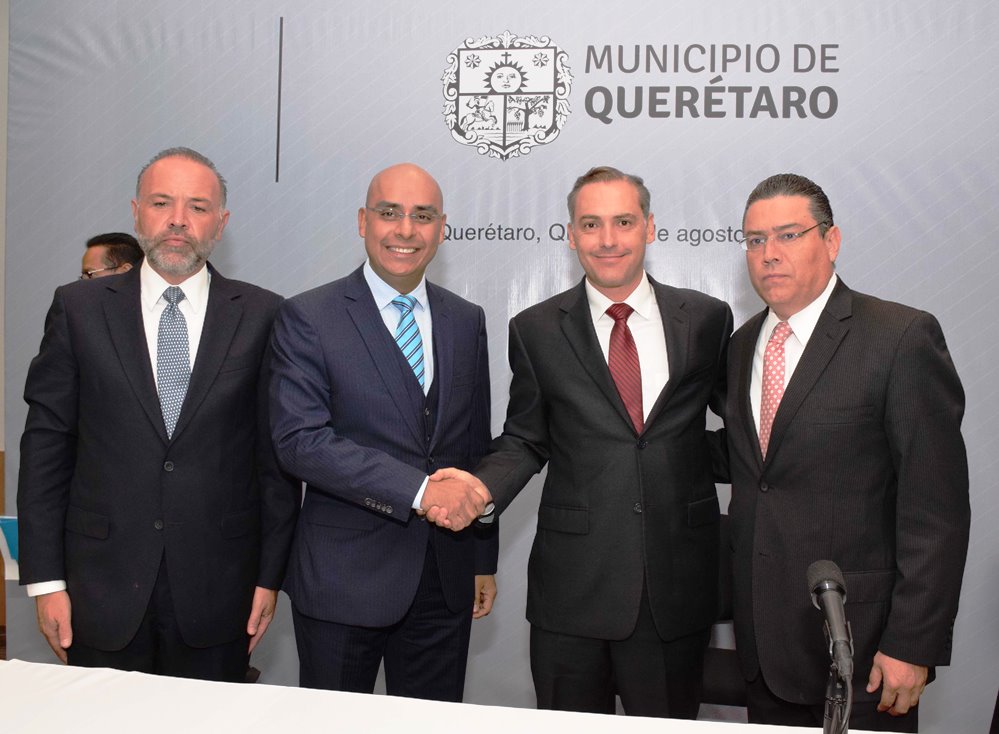En rueda de prensa ante los representantes de los diversos medios de comunicación, el presidente Municipal de Querétaro, Luis Cevallos Pérez, y el presidente Municipal electo, Marcos Aguilar Vega, anunciaron el inicio de los trabajos del proceso de Entrega-Recepción de la administración capitalina.