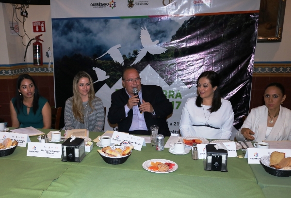El secretario de Turismo, Hugo Burgos García; la secretaria de Cultura, Paulina Aguado Romero, y las presidentas municipales de la región serrana anunciaron esta mañana la edición 2017 de la Expo Sierra Gorda, que se llevará a cabo del 14 al 16 de julio en el Centro de las Artes de Querétaro.