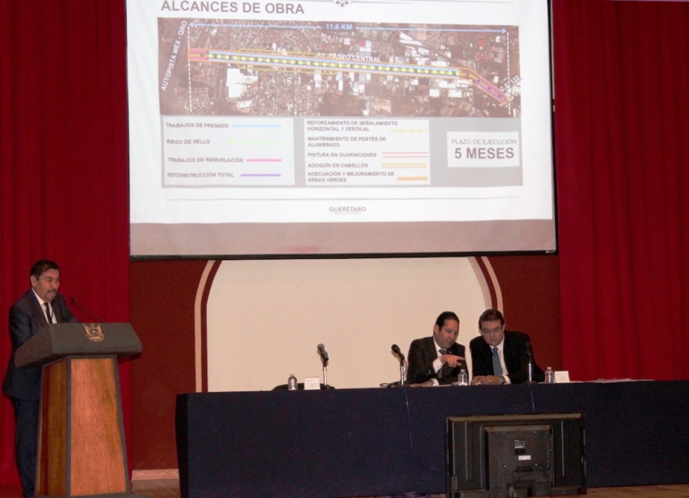 Al explicar los detalles técnicos de la obra en Paseo Central, Fernando González Salinas, Director de la Comisión Estatal de Caminos (CEC), informó que los trabajos contemplan 9 mil 800 metros cuadrados de renivelación; 64,324 de fresado; 10.6 km de riego de sello; 4,200 metros cuadrados de reconstrucción total; y 11.6 km de señalamiento y pintura en guarniciones.