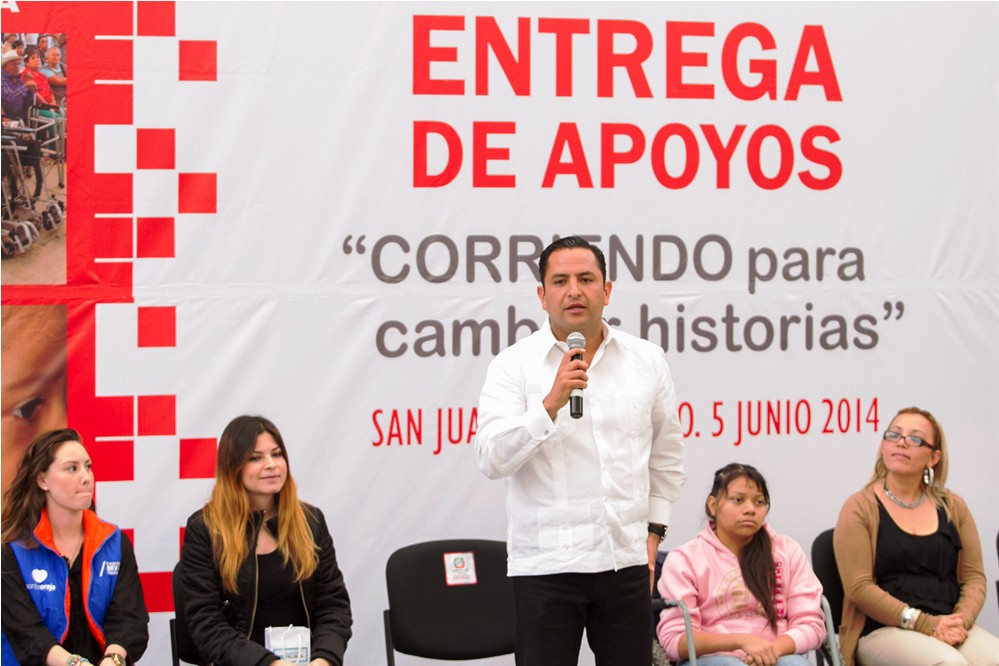 El alcalde Fabián Pineda Morales, en conjunto con la Fundación Telmex y la Fundación MVS Radio, a través del programa “Corriendo para cambiar historias” entregaron 48 auxiliares auditivos, 10 sillas de ruedas y cinco computadoras a personas que padecen alguna discapacidad, a través del esquema de trabajo peso a peso.