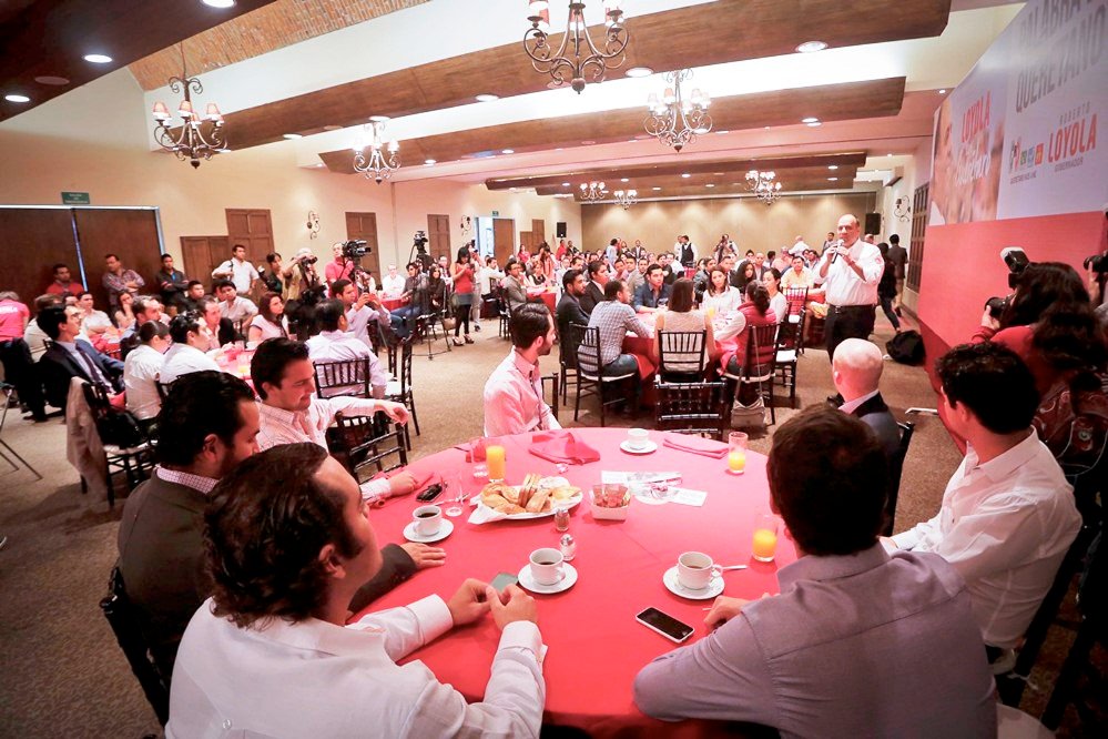 El candidato del PRI a la Gubernatura de Querétaro, Roberto Loyola Vera, se reunió con jóvenes queretanos que participan en Cámaras Empresariales Juveniles; los escuchó y se comprometió con ellos a impulsar a todo aquel joven en Querétaro que decida emprender empresa en cualquiera de los 18 municipios del estado.