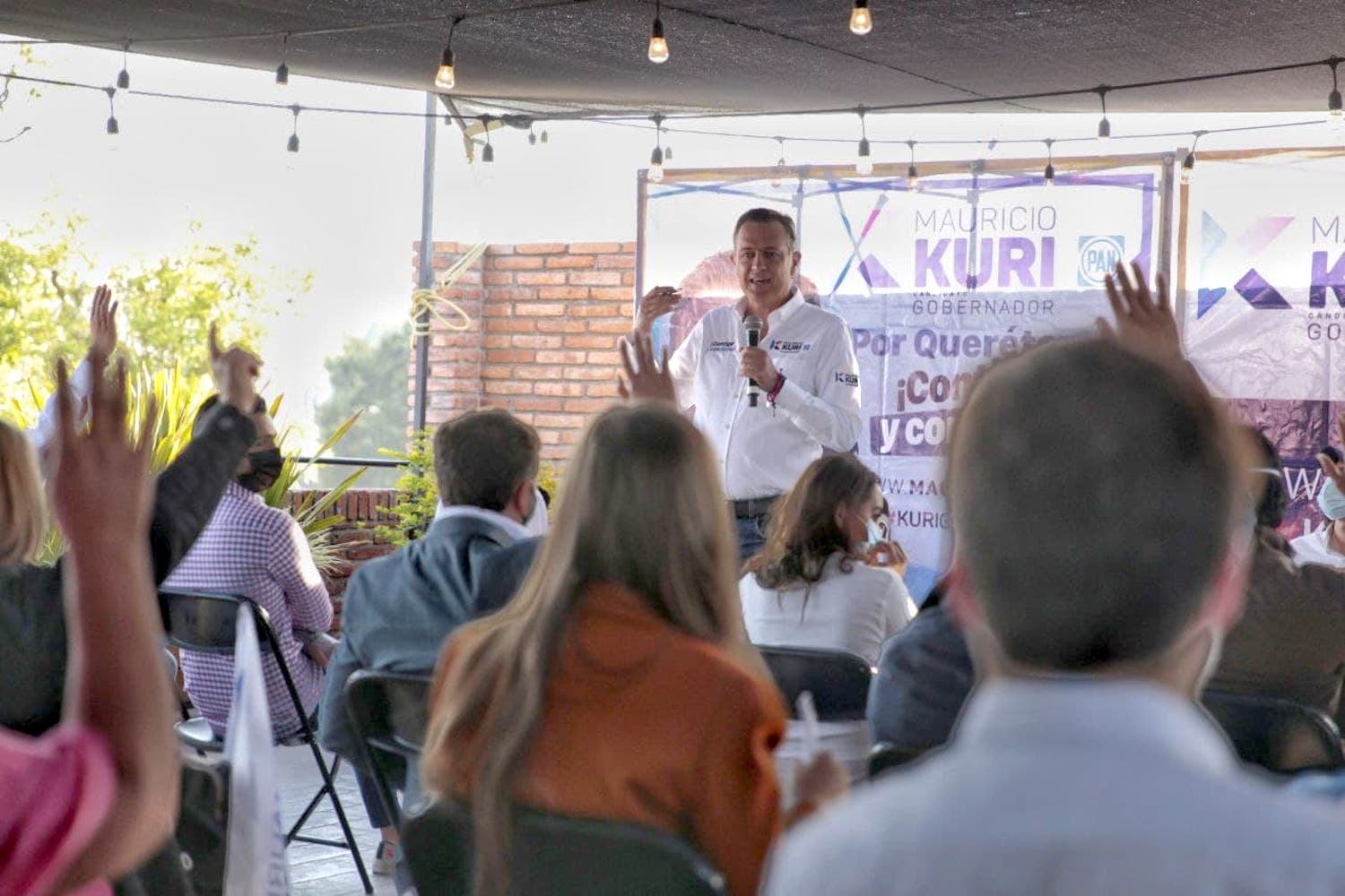 En su cuarto día de actividades de la campaña por la gubernatura del estado de Querétaro, Mauricio Kuri González se reunió con un grupo de jóvenes y mujeres emprendedoras, a quienes propuso la creación de unidades de incubación de empresas para los 18 municipios, así como un programa para emprendedores menores de 30 años.