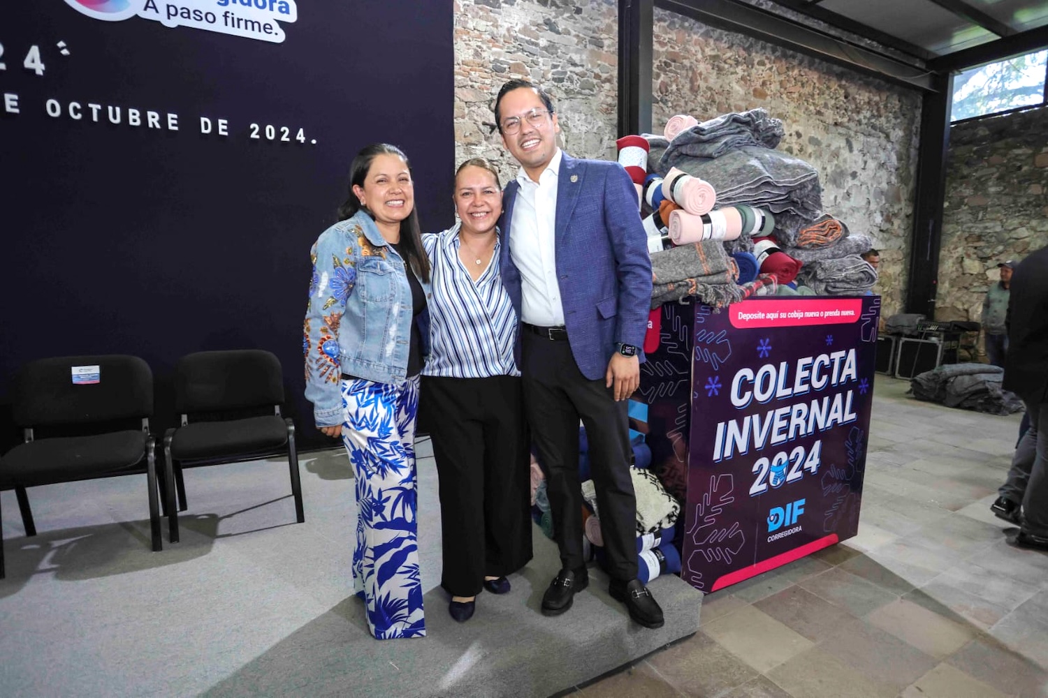 La presidenta del patronato del Sistema Municipal DIF Corregidora, Gaby Trápala, acompañada del alcalde, Chepe Guerrero, iniciaron la colecta invernal 2024, en la cual se pretende recolectar más de seis mil prendas de invierno o cobijas en beneficio de quienes más lo necesitan.