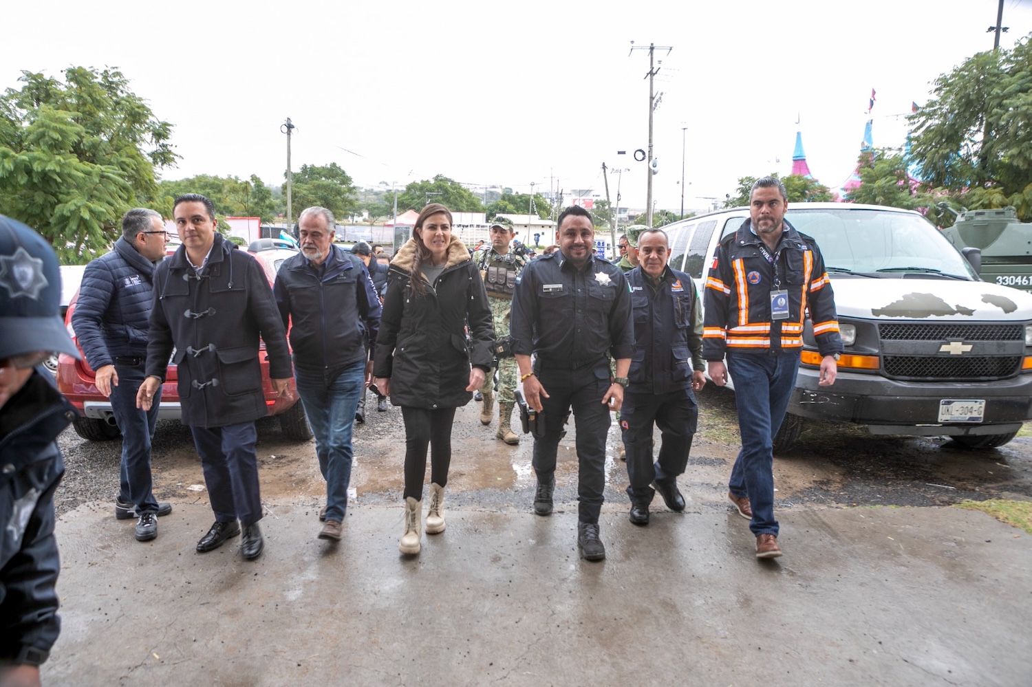 El presidente de la Unión Ganadera Regional, Romualdo Moreno, junto con el organizador de la feria, Carlos Alcocer y los titulares de Seguridad Ciudadana, Turismo y Protección Civil del Estado de Querétaro, Seguridad y Protección Civil de El Marqués, pasaron revista a los elementos del operativo dispuesto para esta edición de la feria.