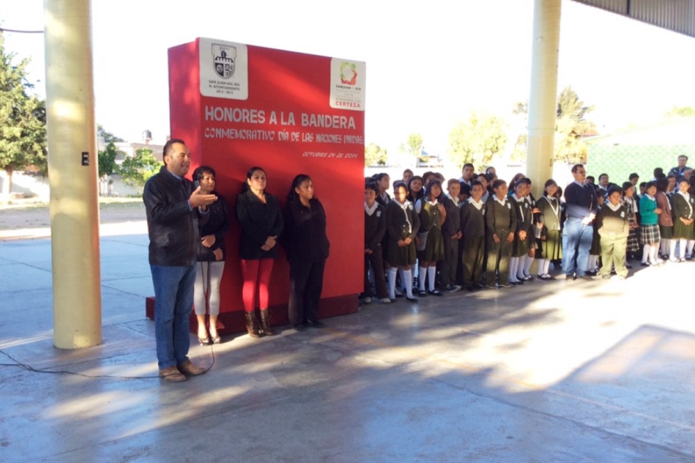 En su mensaje, además de destacar la importancia de conmemorar un año más del convenio de unidad firmado por diversos países en la búsqueda de la paz, Gerardo Sánchez destacó el trabajo y compromiso de los maestros y reconoció la organización de los pequeños alumnos durante el desarrollo del evento a quienes invitó a seguir estudiando, a esforzarse y respetar a sus compañeros y maestros.
