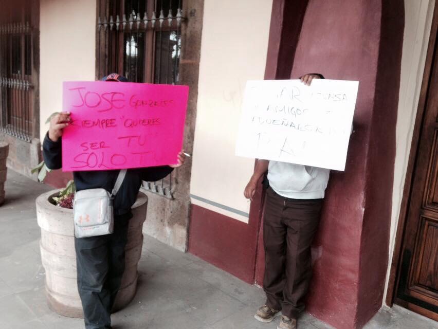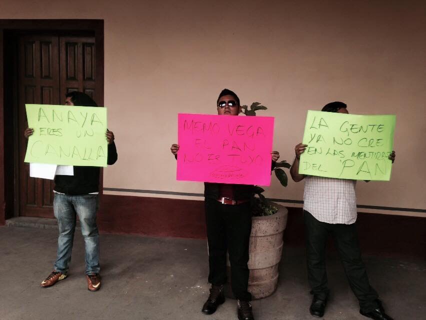 Con algunas leyendas como “Anaya eres un canalla”, “La gente ya no cree en las mentiras del PAN”, “Roberto Cabrera otra vez te chamaquearon”, “José González, siempre quieres ser tú, sólo tú”, “Memo Vega, el partido no es tuyo” y “El panismo quiere elección por democracia, no por dedazo”, estos supuestos militantes acusaron que el PAN está secuestrado y ya no es un partido democrático.