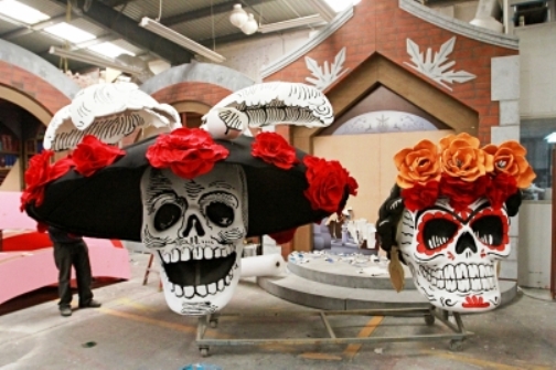 La fundadora de Anima Inc, Alejandra González, encargada del último eje, denominado “Pal Panteón: Fiesta y Algarabía”, señaló que actualmente trabajan entre 40 y 60 personas en el Taller el Volador, en Iztapalapa, para la producción de estos materiales.