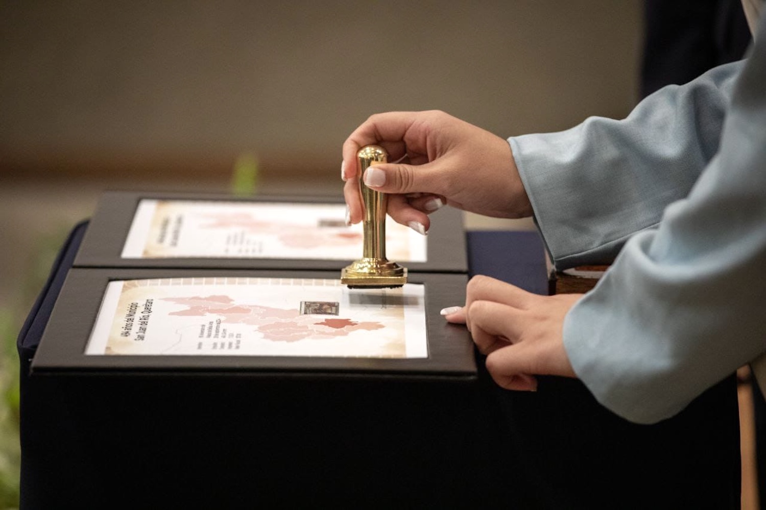 Tras la lectura de la reseña histórica de la fundación de San Juan del Río, a cargo de la síndica del Ayuntamiento, Rosalba Ruiz Ramos, el presidente municipal sanjuanense, Roberto Cabrera Valencia, acompañado de la Reina de la Feria Nacional Ganadera San Juan del Río 2025, Hanney I, y el gerente estatal de Correos de México en Querétaro, Juan Manuel Contreras Espinoza, realizaron la cancelación especial del sello postal.