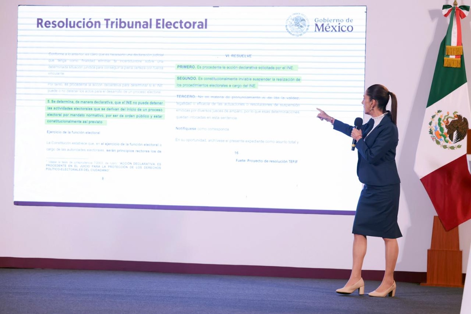 La presidenta constitucional de los Estados Unidos Mexicanos, Claudia Sheinbaum Pardo, celebró que la elección de jueces, magistrados y ministros del Poder Judicial será una realidad, tras la resolución del Tribunal Electoral del Poder Judicial de la Federación (TEPJF) de declarar viable el proceso electoral que organiza el Instituto Nacional Electoral (INE).