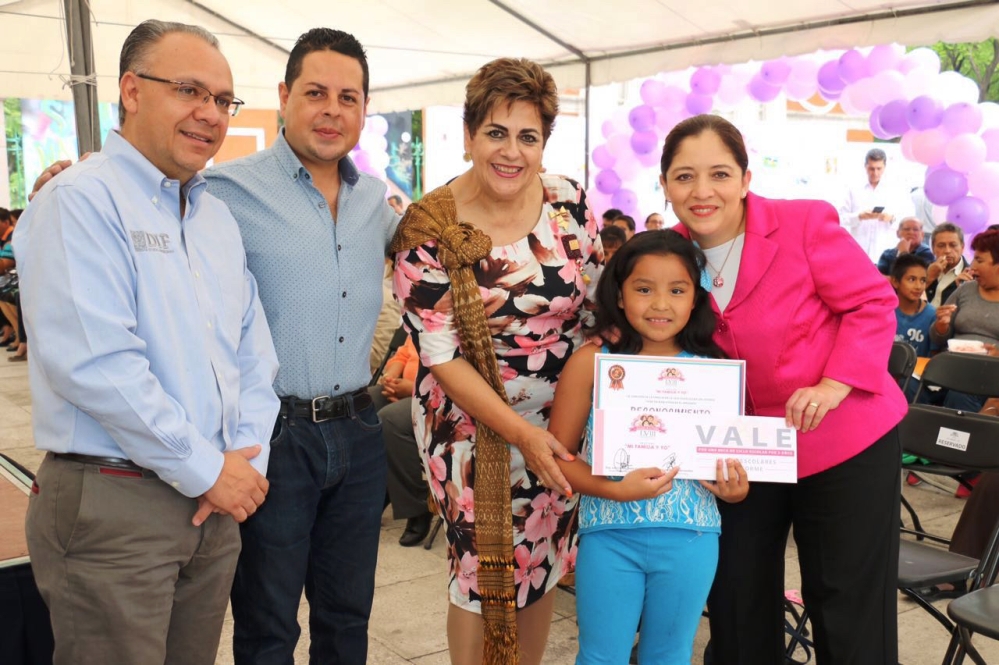 Posteriormente, los integrantes del presidium pasaron a ver la exposición de los dibujos y las fotografías “Mi Familia y Yo”; asimismo, plasmaron sus huellas en una mampara e hicieron la entrega de 7 becas por tres años de útiles escolares; los niños ganadores fueron: Luis Antonio Peralta Pintor, Mariana Martínez Enciso, Dulce Melani Vázquez Sánchez, Naomi Alexandra García Bárcenas, Alejandra Cicilia Rodríguez, Aldo Yahel López Villacaña e Ingrid González Perales.