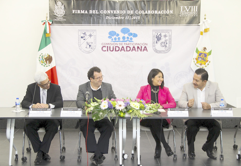 La Universidad Autónoma de Querétaro (UAQ), a través de la Facultad de Ciencias Políticas y Sociales (FCPS), firmó un convenio de colaboración con la Comisión de Participación Ciudadana de la LVIII Legislatura del Estado de Querétaro.
