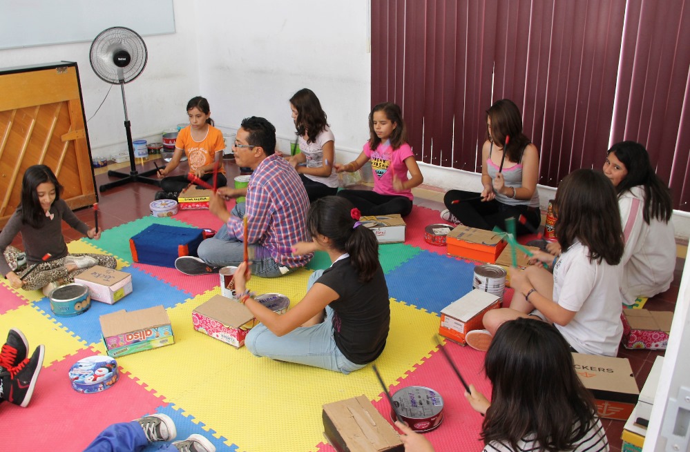El Lic. Mauricio Ruiz destacó que en las dinámicas se emplean materiales reciclados para que los participantes creen sus obras y generen sus propios instrumentos y puedan personalizarlos.