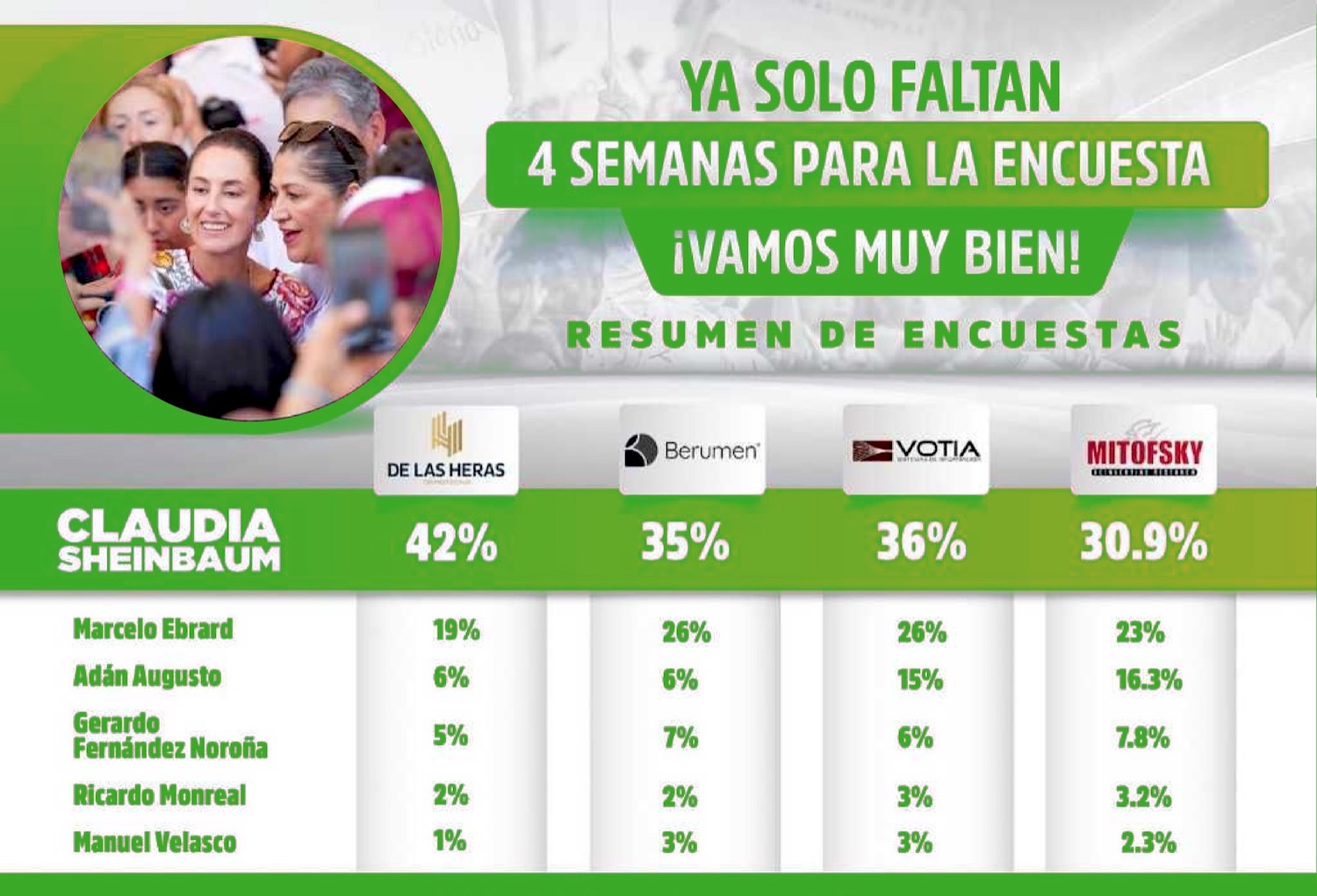 El dirigente del Partido Verde Ecologista de México en Querétaro, Ricardo Astudillo Suárez, reconoció que hoy, a 18 días de la Encuesta Nacional, las casas encuestadoras más reconocidas del país, reiteran que Claudia Sheinbaum es la figura preferida mejor evaluada por la ciudadanía, por lo que se convertirá en la candidata de la Cuarta Transformación a la Presidencia de México.