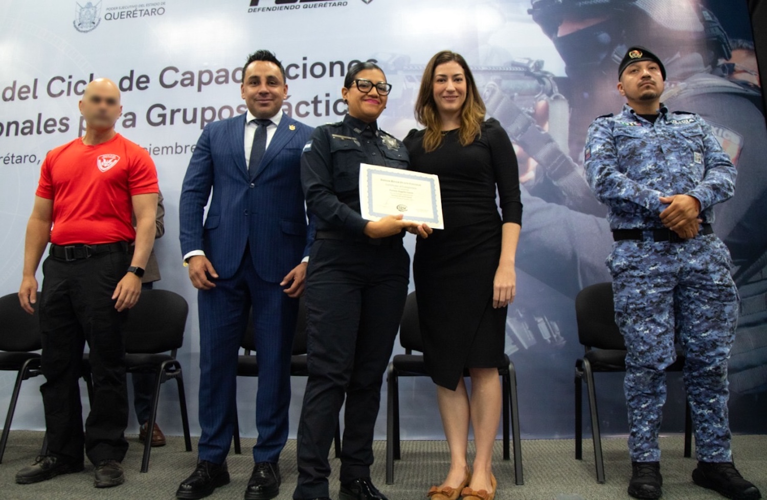 El secretario de Seguridad Ciudadana, Iován Elías Pérez Hernández encabezó la clausura del Ciclo de Capacitaciones Internacionales para Grupos Tácticos, a través de las cuales se fortalecieron conocimientos y habilidades de Policías Estatales de Querétaro y de entidades como Chihuahua, Coahuila, Jalisco, Guanajuato, Michoacán, Puebla, Sonora, Tamaulipas y Yucatán.