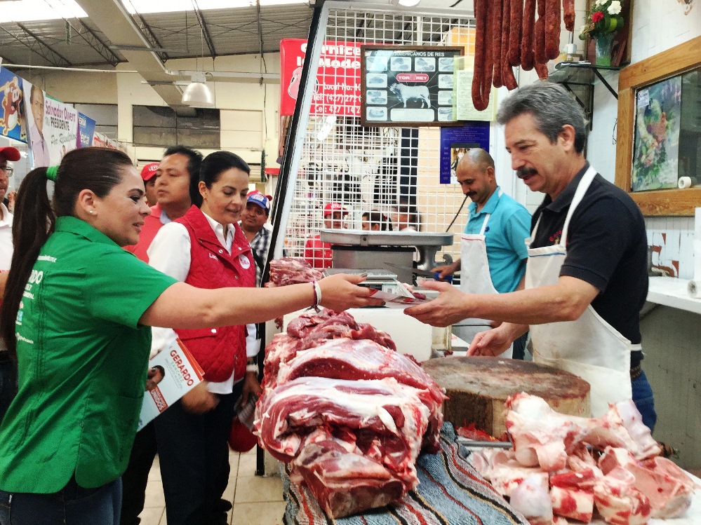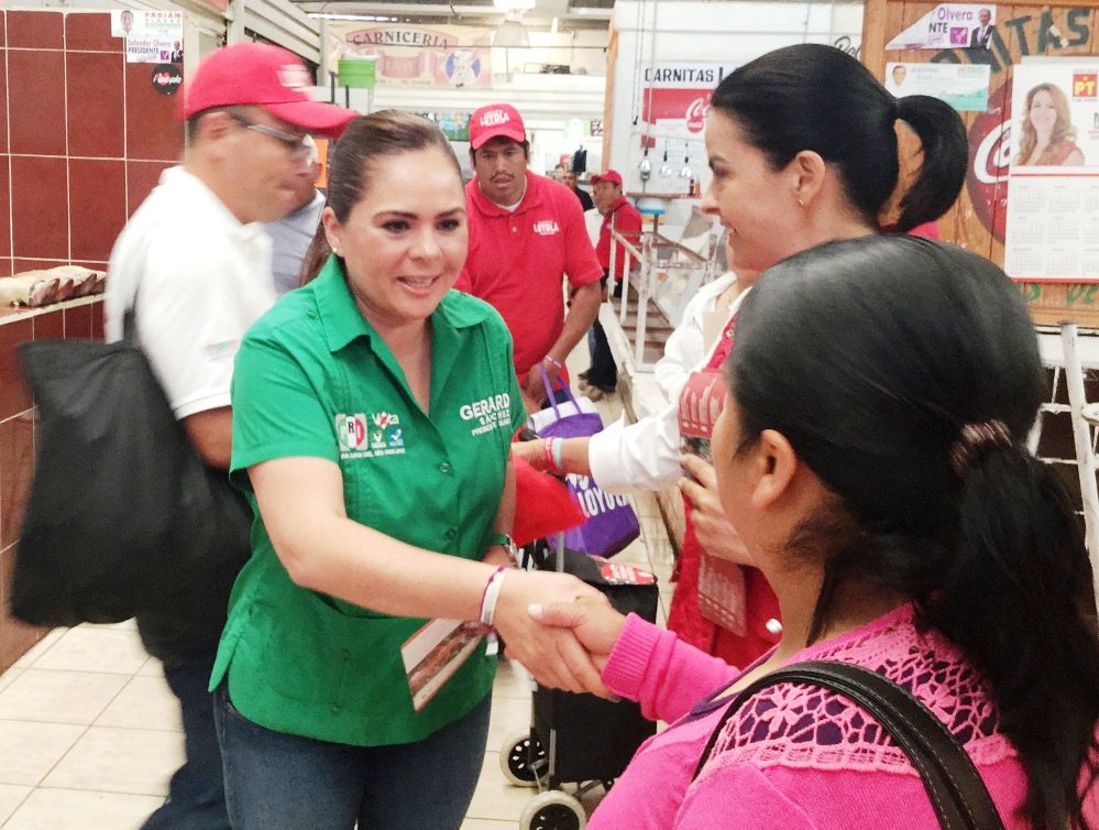 “Vamos a trabajar unidos para mejorar las condiciones de las mujeres de San Juan del Río”, aseveró Isabel Aguirre, esposa del candidato a la presidencia municipal de San Juan del Río por la coalición PRI-Nueva Alianza-Verde, Gerardo Sánchez, durante el recorrido realizado con Lucy Huber, esposa del candidato al gobierno del estado por la misma coalición, Roberto Loyola, por los mercados 5 de Mayo y Reforma.La esposa del candidato sanjuanense aseguró que, de resultar favorecido Gerardo Sánchez con el voto el próximo 7 de junio, la cercanía con las mujeres y con todos los sectores de la población será una de las características principales de la presidencia del DIF municipal.
