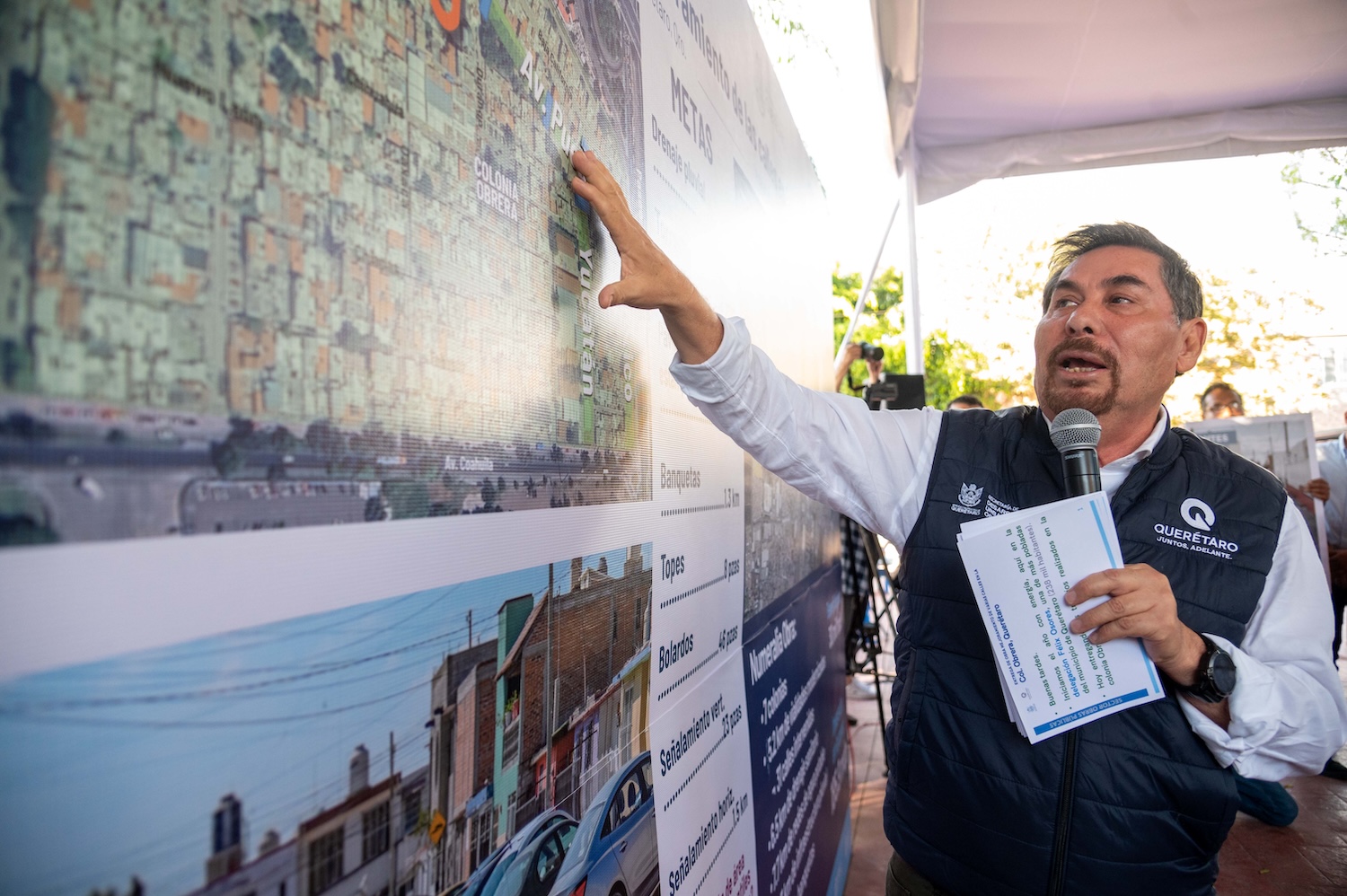 Durante su mensaje, el titular de la Secretaría de Desarrollo Urbano y Obras Públicas (SDUOP), Fernando González Salinas, explicó que los trabajos en esta colonia cumplen con la petición del mandatario estatal de acercarse a los lugares aledaños a la obra de Paseo 5 de Febrero, con el propósito de conocer las principales necesidades de la ciudadania en cuanto a obras públicas.