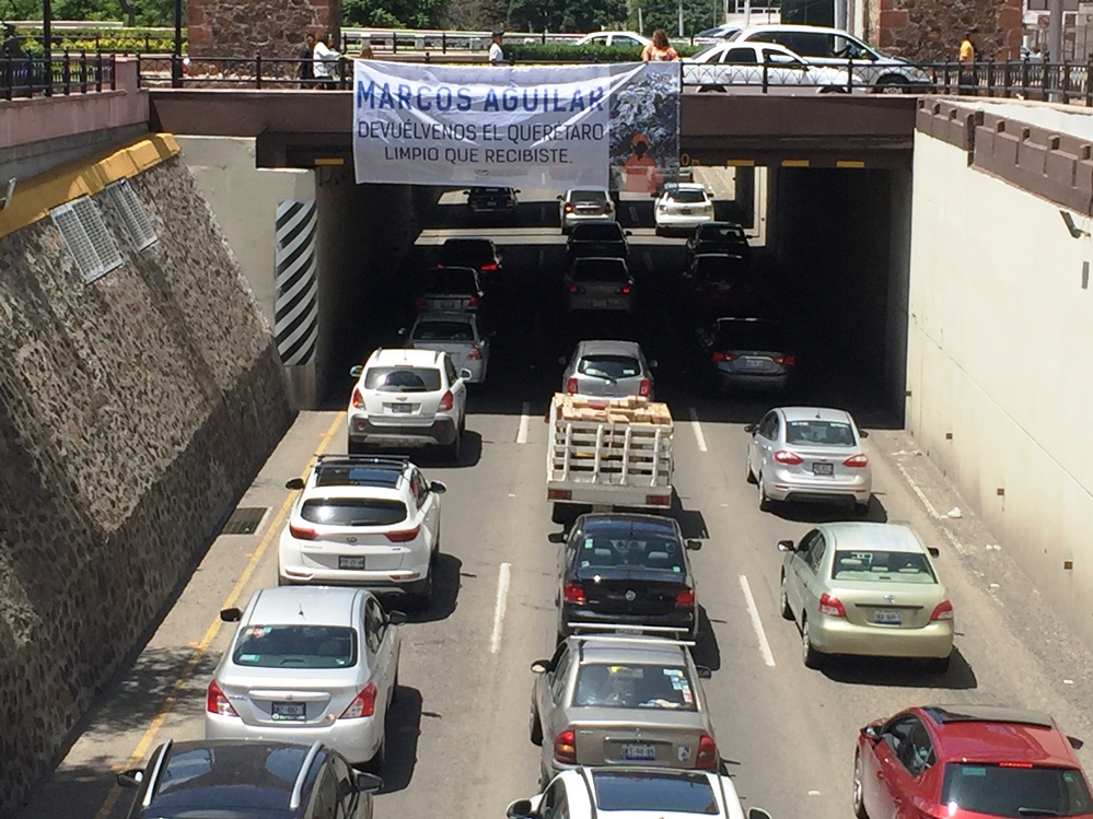 Al continuar con el llamado al presidente municipal, Marcos Aguilar, para que normalice el servicio de recolección de basura, integrantes de Movimiento Territorial Querétaro, encabezados por su dirigente Francisco Pérez Rojas, hicieron un llamado público en las principales arterias viales de la capital.