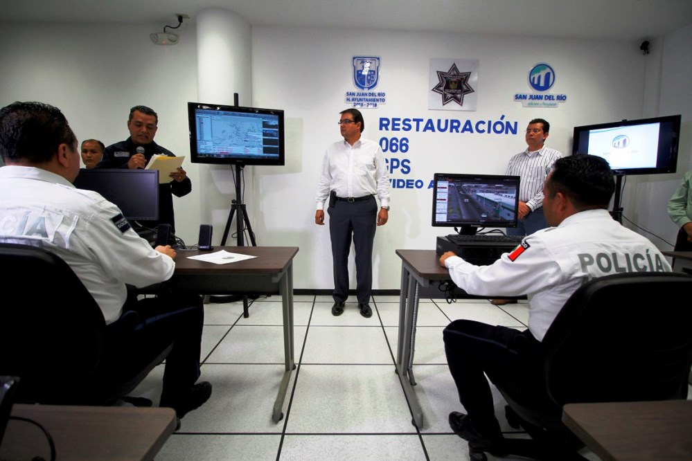 Como se comprometió desde el inicio de su gobierno, cuando marcó el tema de la seguridad como no. 1 en sus prioridades, el Presidente Municipal de San Juan del Río, Guillermo Vega Guerrero, encabezó la entrega de la modernización de la Línea de Emergencias 066 y acompañado del Secretario de Seguridad Pública, Arturo Calvario Ramírez, llevó a cabo una exhibición de la implementación del monitoreo GPS en patrullas y de la videograbación al interior y exterior de las unidades, lo que le dará un giro de 360 grados al trabajo de la corporación.