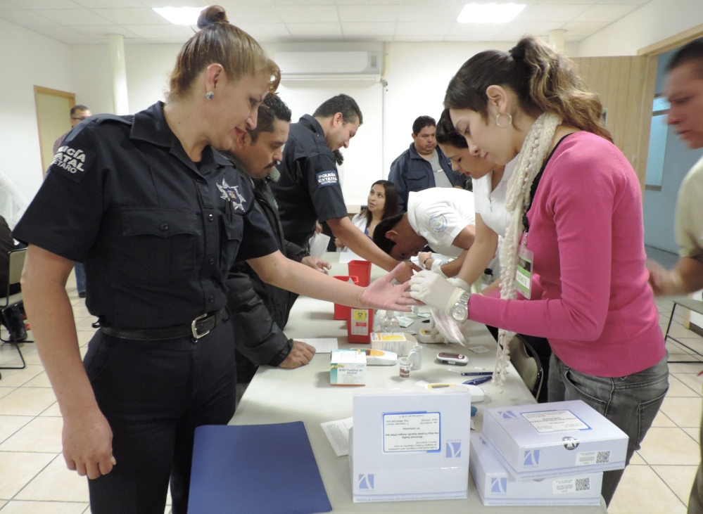 Destacar que se contó con el apoyo de personal de la Secretaría de Salud, mismo además de tomar el peso de los elementos, también midió la talla, la cintura, así como la frecuencia cardíaca, los niveles de glucosa, además de los triglicéridos. Mientras que al personal mayor a los 45 años de edad se les aplicó la prueba para evaluar el factor antígeno-prostático.