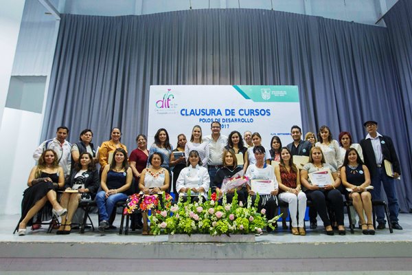 Durante la clausura de cursos de los polos de desarrollo del DIF Municipal, el presidente municipal, acompañado de su esposa, la presidenta del Sistema Municipal DIF, agradeció a los más de 600 alumnos y 26 docentes por su participación en alguno de los cursos y talleres que se brindan a través de los 21 Polos de Desarrollo.