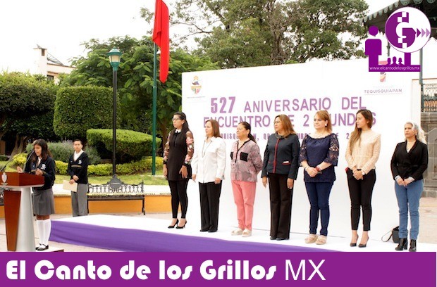 En representación del alcalde, la regidora de Educación y Cultura, Mariela Silvestre Camacho, resaltó la importancia, ante cientos de estudiantes tequisquiapenses que se dieron en la plaza “Miguel Hidalgo”, de conmemorar el Descubrimiento de América.