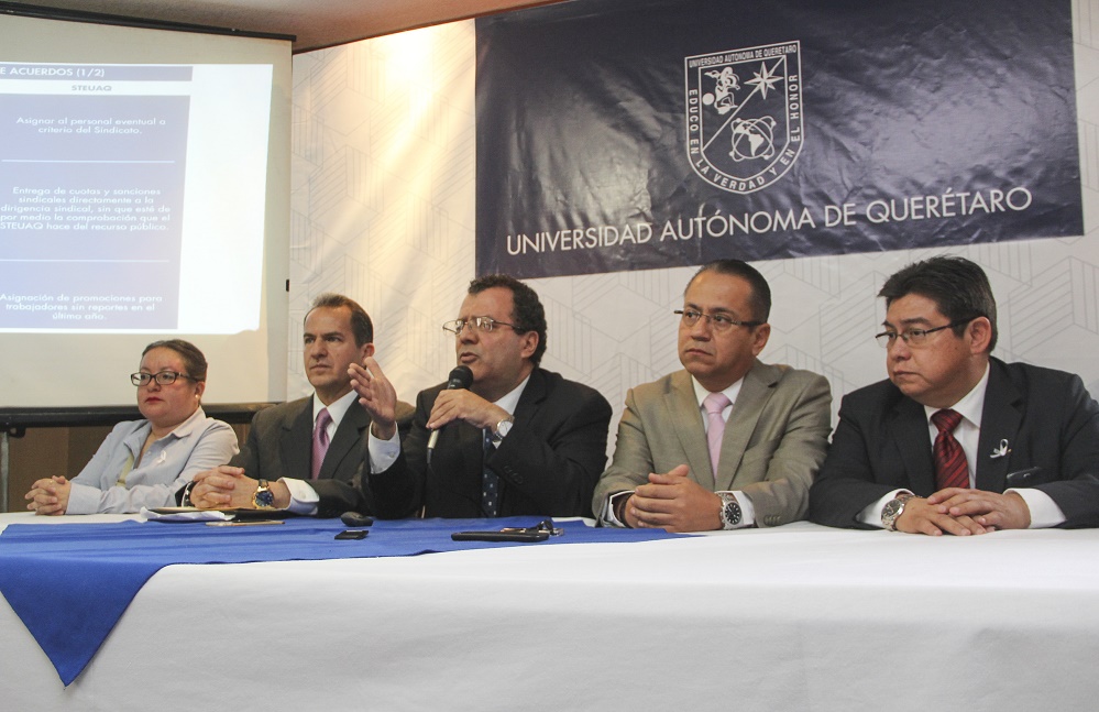 También, como ejemplo de esta intromisión, el Dr. Herrera Ruiz refirió, tal como ya lo había denunciado el abogado de la UAQ, Mtro. Óscar Guerra Becerra, que la Secretaría del Trabajo y la Junta de Conciliación y Arbitraje, a cargo de José Luis Aguilera Rico y Édgar Inzunza Ballesteros, respectivamente, emitieron un documento oficial que señala que con el estallamiento de la huelga fueron desalojadas y tomadas -por los agremiados del STEUAQ- las instalaciones del Campus Concá, a fin de desacreditar uno de los argumentos que la Universidad presentó en el amparo para que se declarara inexistente la huelga en el afán de salvaguardar el derecho humano a la Educación.