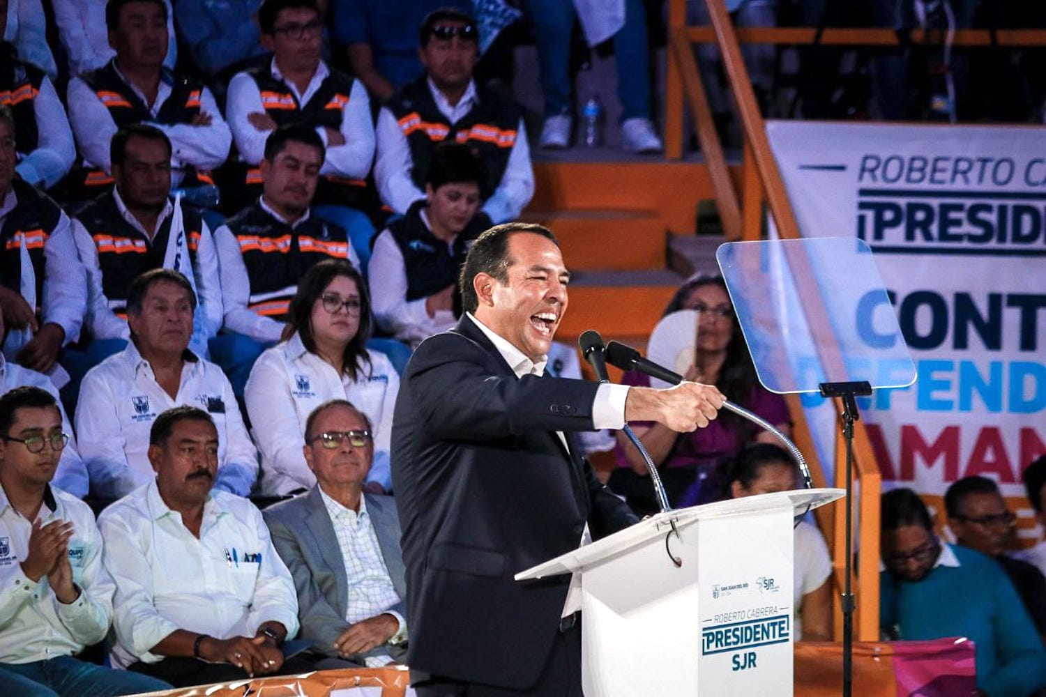 En el Palenque del Centro Expositor –al que acudieron la secretaria de Gobierno del estado de Querétaro, María Guadalupe Murguía Gutiérrez, en representación del gobernador del estado de Querétaro, Mauricio Kuri González; la presidenta del Sistema Municipal para el Desarrollo Integral de la Familia, Georgina Sánchez Barrios; personal del Ejército Mexicano; miembros de los Poderes Legislativo y Judicial del estado; funcionarios estatales y federales; expresidentes municipales de San Juan del Río; los integrantes del ayuntamiento sanjuanense y del Gabinete Municipal; líderes sociales, empresariales y de comerciantes; directores de medios de comunicación locales y estatales, así como invitados especiales–, Roberto Cabrera destacó que San Juan del Río son todos.