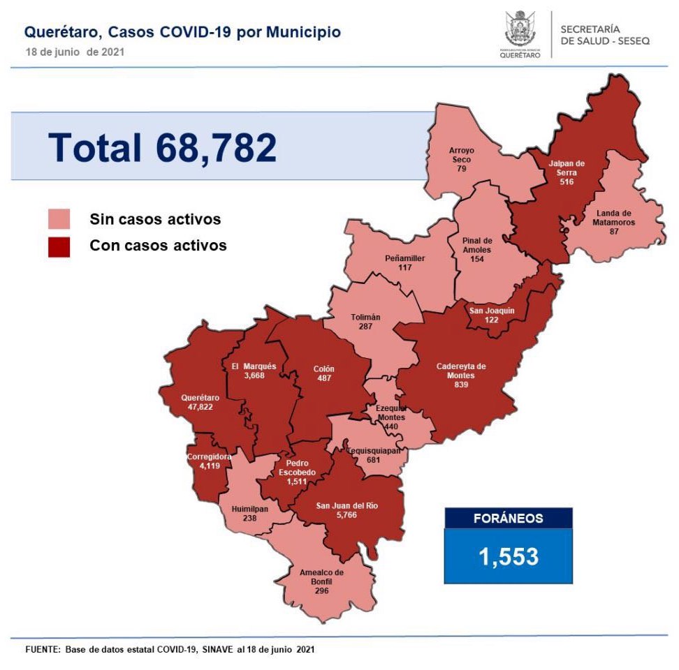 La Secretaría de Salud de Querétaro reportó este viernes cero defunciones por Covid-19, aunque se sumaron 20 casos de la enfermedad; se trata de 13 mujeres y siete hombres.