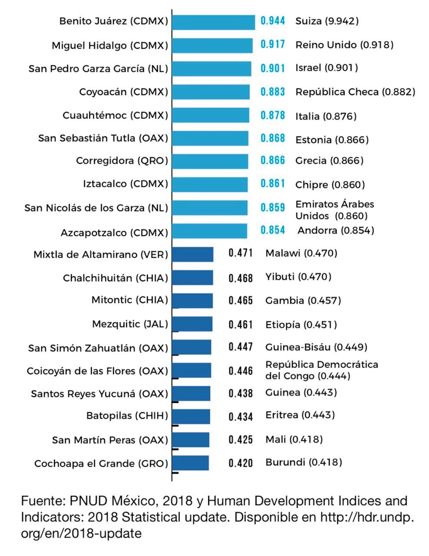 Así, Corregidora se ubica entre los primeros diez municipios con mayor IDH en el país, de los cuales seis están en la Ciudad de México, dos en Nuevo León, uno en Oaxaca y uno (Corregidora) en el estado de Querétaro.