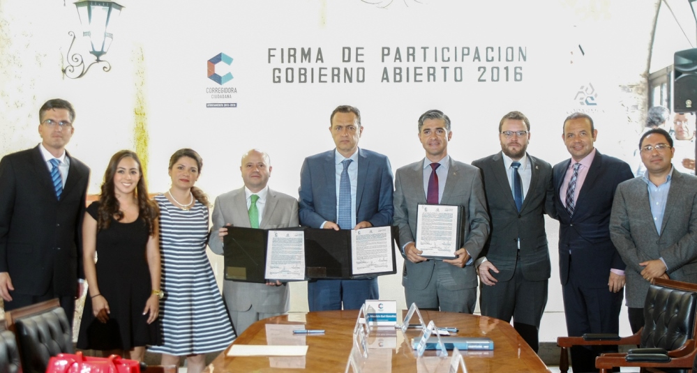 Mauricio Kuri González, presidente municipal de Corregidora, ante autoridades de la Comisión Estatal de Información Gubernamental (CEIG) y Coparmex Querétaro, firmó el documento para dar paso al proceso a través del cual, la administración se estableció como un Gobierno Abierto ante el Sistema Nacional de Transparencia (SNT).