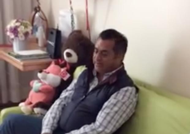 En el video se puede observar al gobernador sentado en un sillón junto a la menor y en compañía de los padres y doctores que la atendieron.