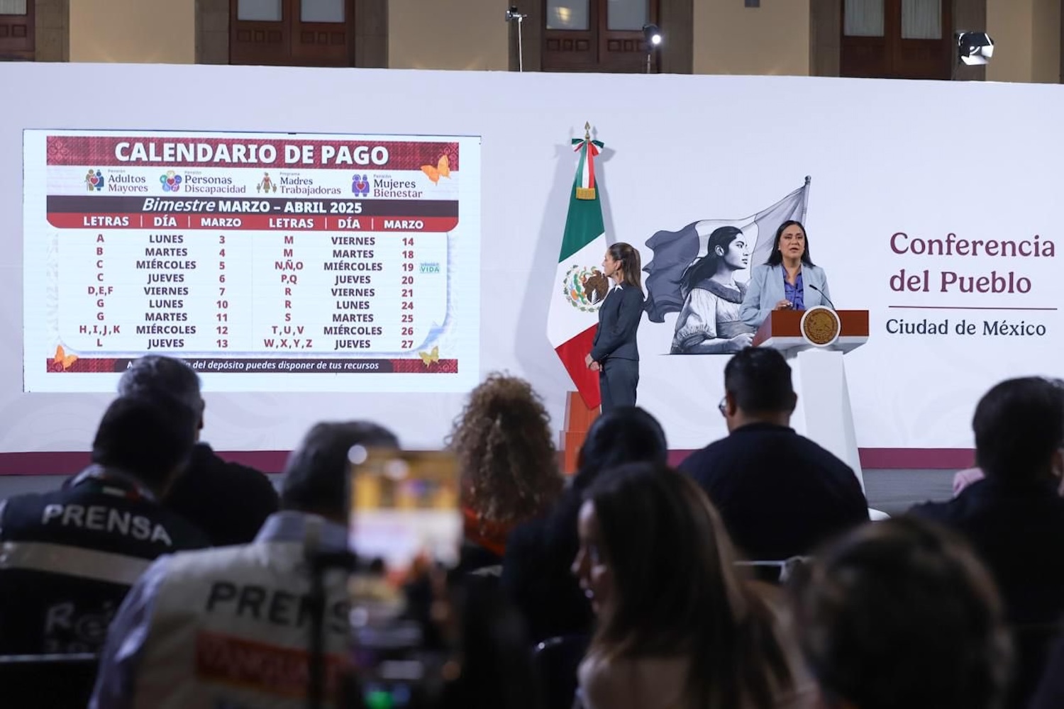 Durante la conferencia matutina: “Las mañaneras del pueblo”, que encabeza la presidenta Claudia Sheinbaum Pardo en Palacio Nacional, la secretaria de Bienestar, Ariadna Montiel Reyes, informó que del 3 al 27 de marzo se realiza la dispersión del pago de las Pensiones y Programas para el Bienestar correspondiente al bimestre marzo-abril a 15.2 millones de derechohabientes adultos mayores, mujeres bienestar, personas con discapacidad y madres trabajadoras, con inversión social de 87 mil 068.9 millones de pesos.