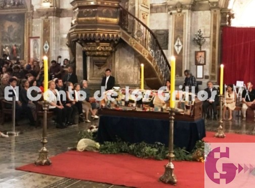 El ataúd de Parra, quien falleció la víspera a los 103 años de edad, fue cubierto con un manto que el poeta guardaba con cuidado y que había sido hecho por su madre, Rosa Clara Sandoval, además de lucir el clásico “artefacto” de su autoría “Voy y vuelvo”.