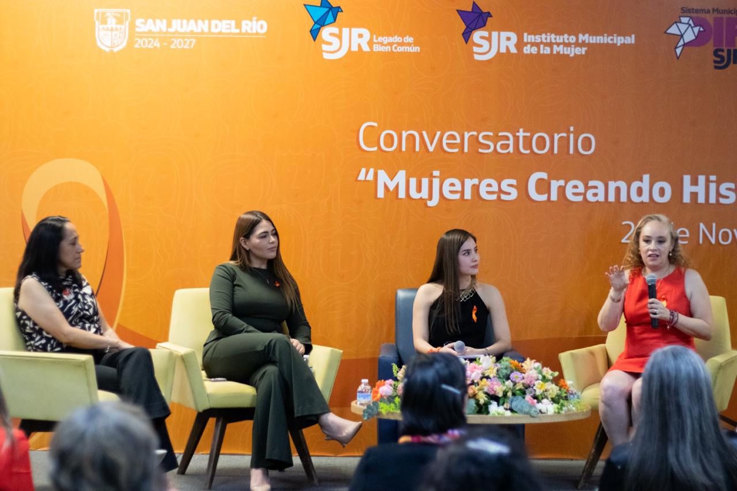 Con el objetivo de sensibilizar a la sociedad sobre la violencia de género y promover la igualdad entre mujeres y hombres, el presidente municipal de San Juan del Río, Roberto Cabrera Valencia asistió al Conversatorio “Mujeres Creando Historias”, realizado por el Instituto Municipal de la Mujer (IMM), en donde se llevó a cabo un espacio para el intercambio de ideas, experiencias, opiniones y visiones, en conmemoración del 25 de noviembre Día Internacional para la Eliminación de la Violencia contra la Mujer.