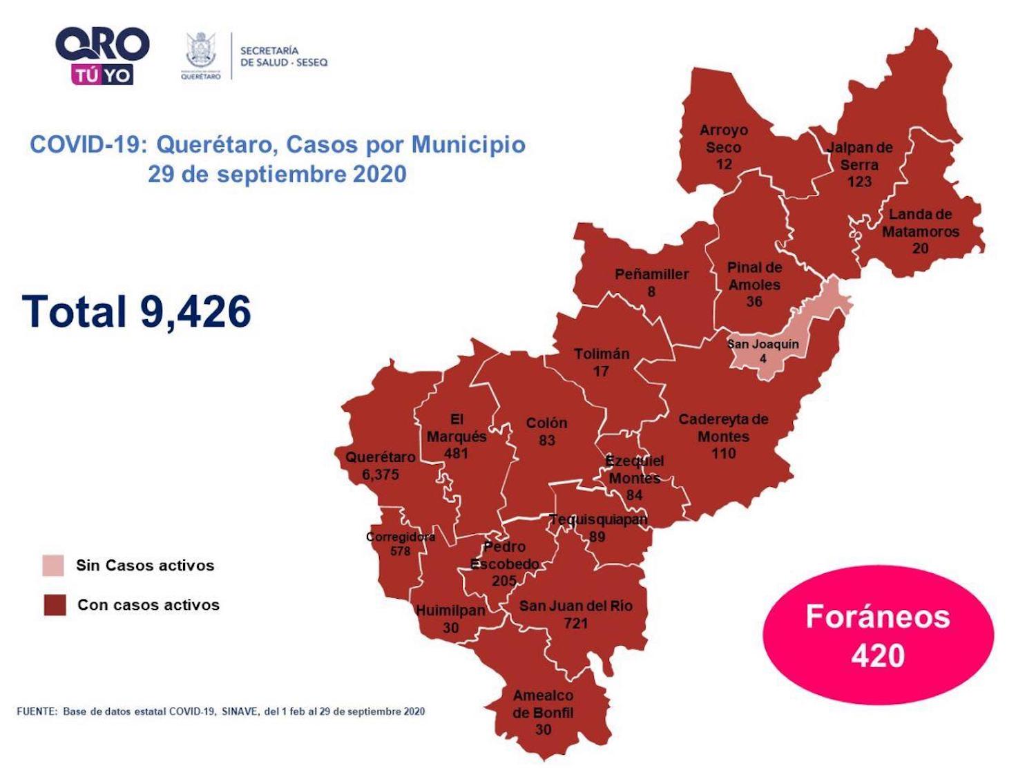 En la entidad se tiene un registro acumulado de nueve mil 426 casos de Covid-19; 45% son mujeres y 55% son hombres.
