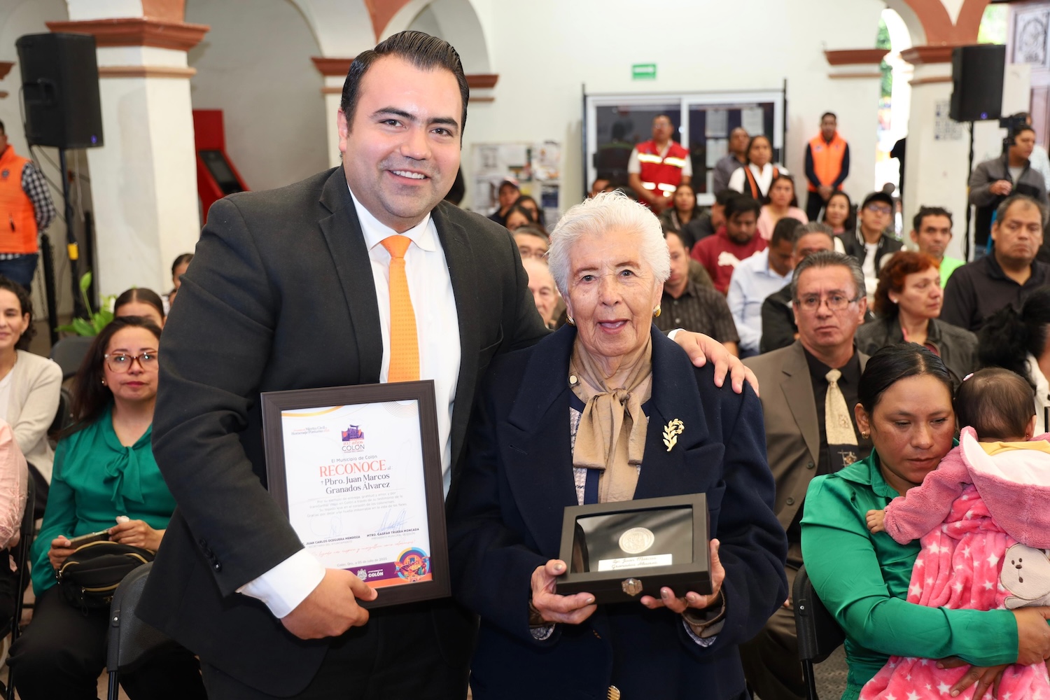 A esta ceremonia acudió la familia del presbítero Granados Álvarez, encabezada por la mamá doña Trini, quien recibió de manos del alcalde Trueba Moncada, un reconocimiento público a la memoria y legado de su hijo Juan Marcos.